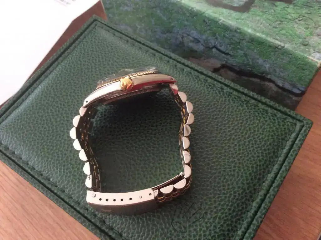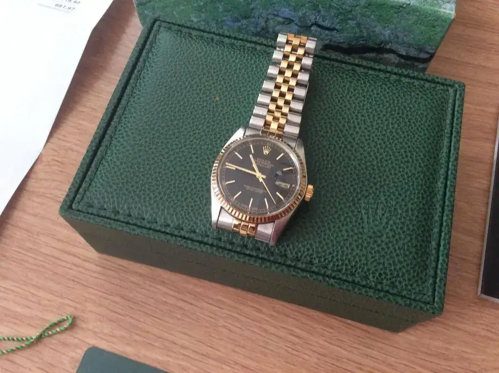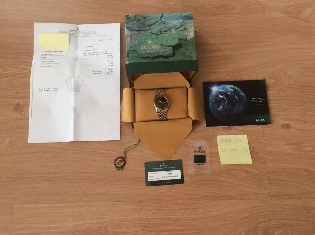 Saco para la venta este Datejust ref 16013, el reloj esta en muy buen estado, paso una revision completa el 15. 11. 2013, aparte se sustituyeron esfera, indicador de fecha y agujas, he adjuntado la factura en las fotografias para que lo comprobeis, viene con la dotacion bastante completa, caja exterior, caja interior, lacre, almohadilla y tarjeta de revision de Rolex.