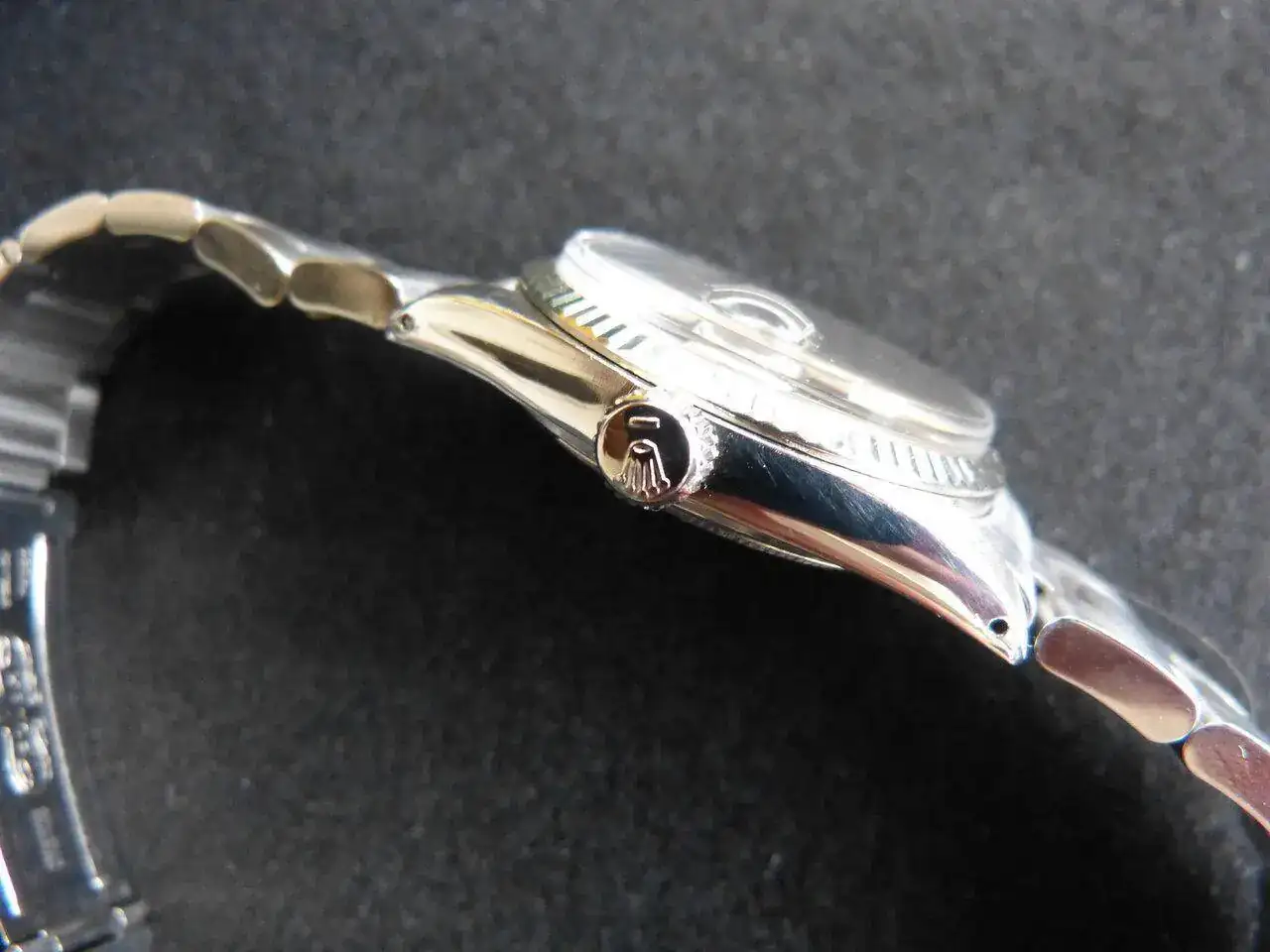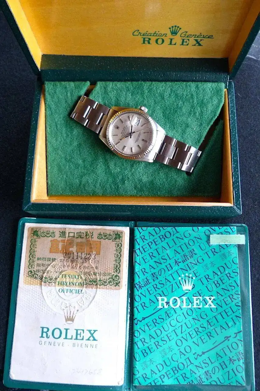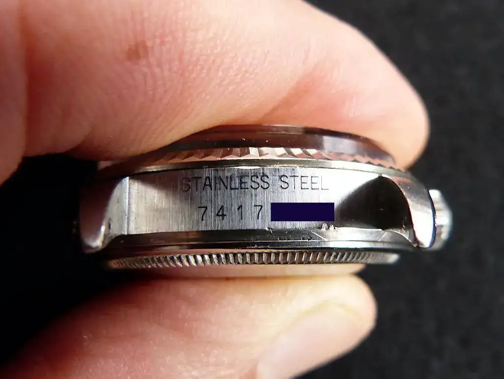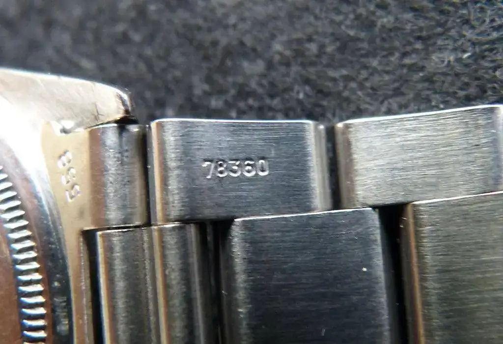 Reloj en muy buen estado general y original. Caja bien conservada, seguramente con algún pulido leve en el pasado pero aun entera y sin desperfectos. Bisel de oro blanco en muy buen estado. Esfera original en estado impecable, con los puntos de tritio íntegros y con una patina espectacular, una de las esferas Rolex mejor conservada que han pasado por mis manos. Plexiglass en muy buen estado. Brazalete Oyster 78360 raro de ver en esta referencia (casi todos venían con Jubilee) también en muy buen estado, sin holguras de importancia, con todas sus piezas marcadas y código clasp H correcto.