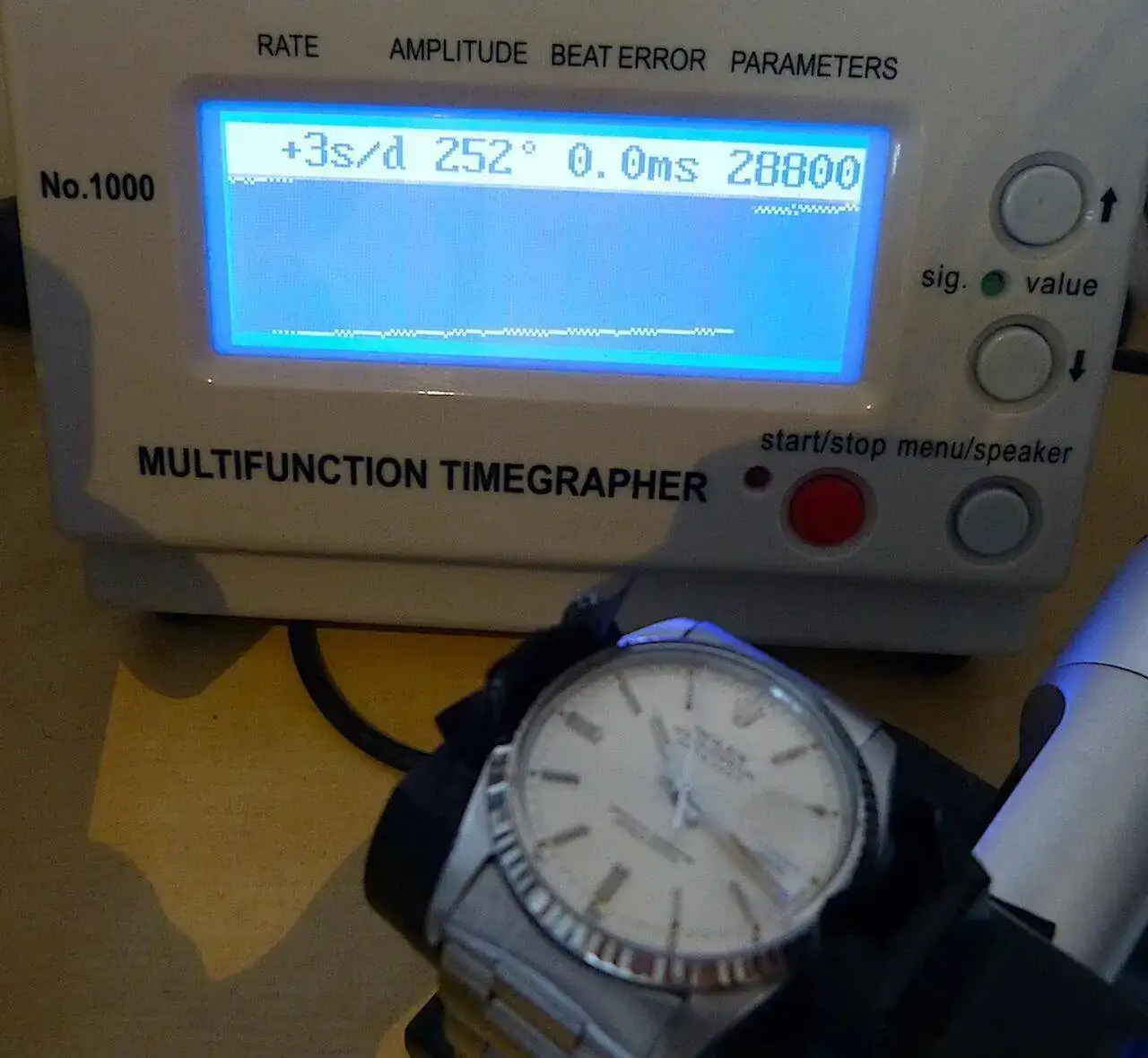 Calibre 3035 en muy buen estado, sin historial de revisiones pero revisado hace unos años por su propietario anterior, se ha vuelto a comprobar y ajustar en centro relojero con buenos parámetros de marcha y amplitud.