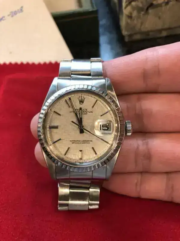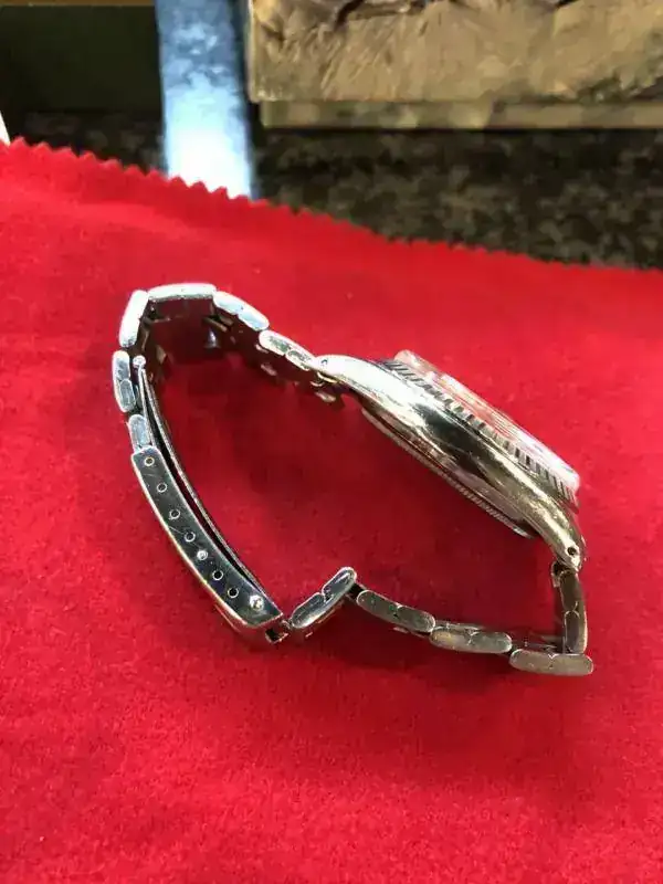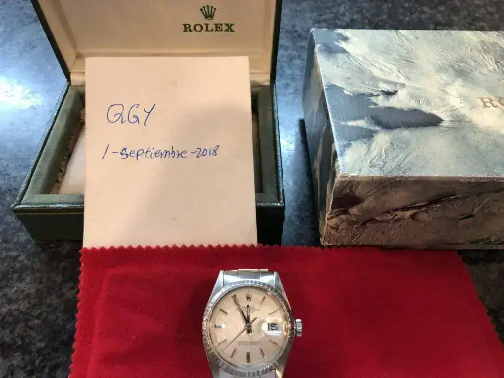 Pongo a la venta un reloj muy especial rolex Datejust 1603/0 Linen dial color plata muy especial con el brazalete 7836 y end link 358, serie del reloj: 339xxxx todo de origen y ha tenido muy poco uso, el brazalete 7836 de remaches sin holgura.