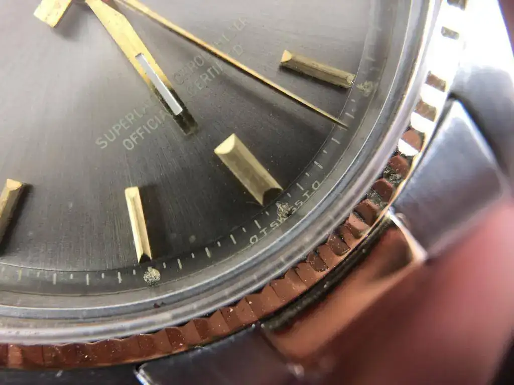 Como podeis observar su estado es muy bueno, ya que es un reloj con 48 años nada mas y nada menos. Brazalete oyster con el eslabón central de oro y caja de acero y oro también. Ademas como extra lleva sigma dial (los indices son también de oro). Mecánicamente esta recién revisado y con un año de garantía.