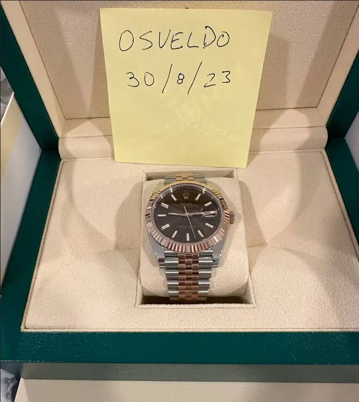 Buenos dias compañeros, sacando un algo mas de artilleria pesada de mi caja, a la venta este Rolex Datejust en oro rosa y acero, dial chocolate de 41mm en jubilee para mi de las combinaciones mas bonitas para este modelo, pero nunca lo he usado asi que sale a la venta para que lo disfrute y estrene otro forero.