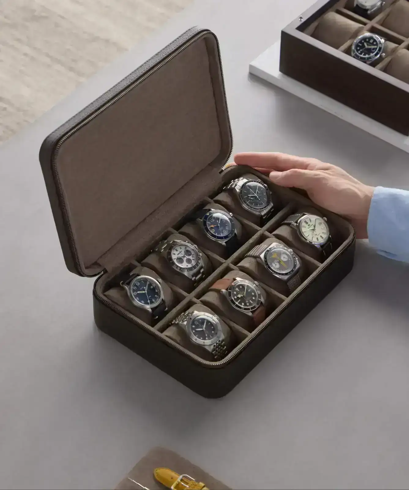 Los veo perfectamente compatibles, pero en una caja de 6, tendería a diversificar más entre piezas. Yo veo dos relojes tres agujas con esfera negra para llevar con brazalete, con uno me valdría en una colección corta. Lo difícil es elegir cuál.