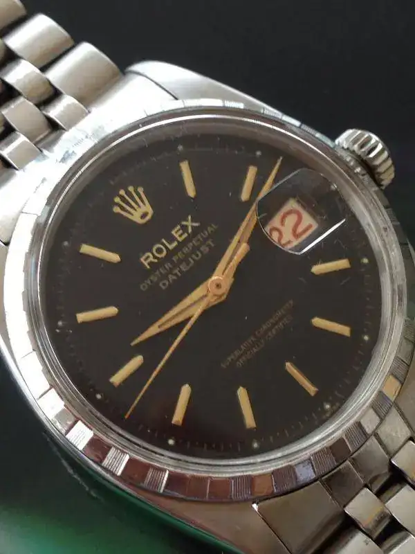 Se vende este DATEJUST 6605, tiene una preciosa esfera gilt dial y números alternos rojo negro roulette, modelo 6605, de 1957, es una rareza por la esfera y los números roulette, el estado es muy bueno, sin golpes, el armis jubille de la epoca tipico de chapitas de 20mm, tiene algo de holgura, pero para nada anormal o no ponible, funciona correctamente y completamente original. Tiene el plexi algo girado, pero antes del envío lo mandare a mi relojero a que lo coloque correcto, le ponga gomas nuevas y le haga su pertinente prueba de estanqueidad. Se trata de una rareza por la esfera gilt, es decir una pieza completamente coleccionable. Dado el precio de salida para la pieza que hablamos no me interesan cambios excepto rolex deportivos.Consultar mis bonus ante cualquier duda.