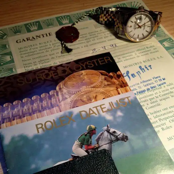 Ha llegado a mi una pieza especial que lleva guardada en una caja de seguridad desde 1991, su fecha de compra. No creo que haya sido estrenado. Está impoluto y no ha pasado por el SAT, ni para revisión, ni para limpieza o pulido. Está tal como se compró en esa fecha, con todos sus eslabones en el armis.