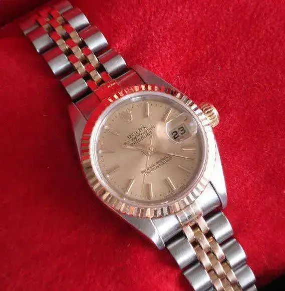 Esfera color champagne, fecha a las 3 con lente ciclops.