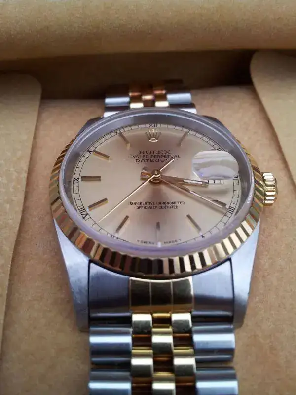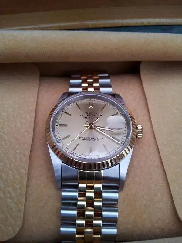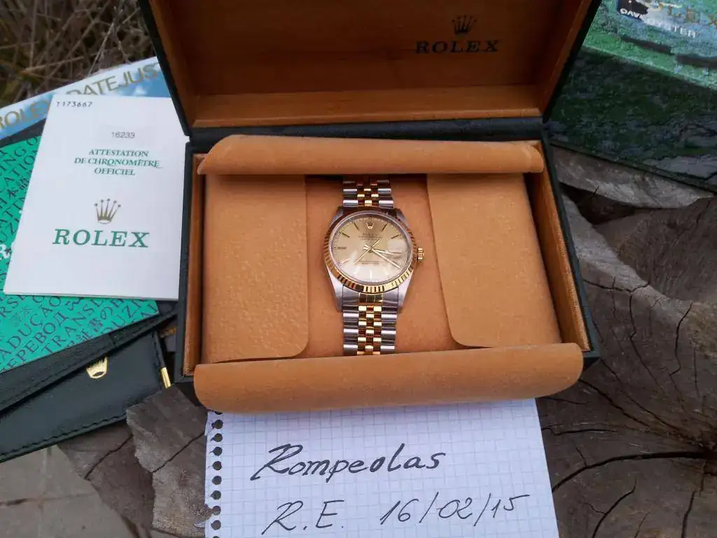 Muy buenas, saco a la venta este Rolex Datejust acero-oro en un estado excepcional, usado en contadas ocasiones por la parienta. Va con su brazalete jubilé sin holguras. Set completo, caja de cartón, caja de piel, tarjeteros, manuales y documentación, así como todos sus eslabones sobrantes. Como ya digo el reloj se encuentra en muy buen estado tanto estético como de marcha.