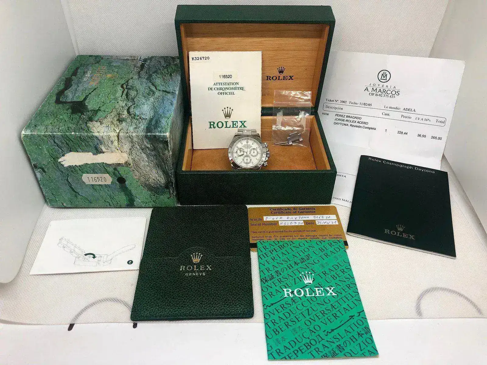 ROLEX DAYTONA 116520 CREAM DIAL PANNA FULL SET,SERIE K AÑO 2002,RECIEN REVISADO,ESPECTACULAR ESFERA COLOR CREMA,ESTOS PRIMEROS DAYTONAS CON MAQUINARIA ROLEX VIRARON SU COLOR BLANCO NATURAL A UN IMPRESIONANTE COLOR CREMA (SERIE Y-K),UN AÑO DE GARANTIA TIMEGOLF SOBRRE LA MAQUINARIA