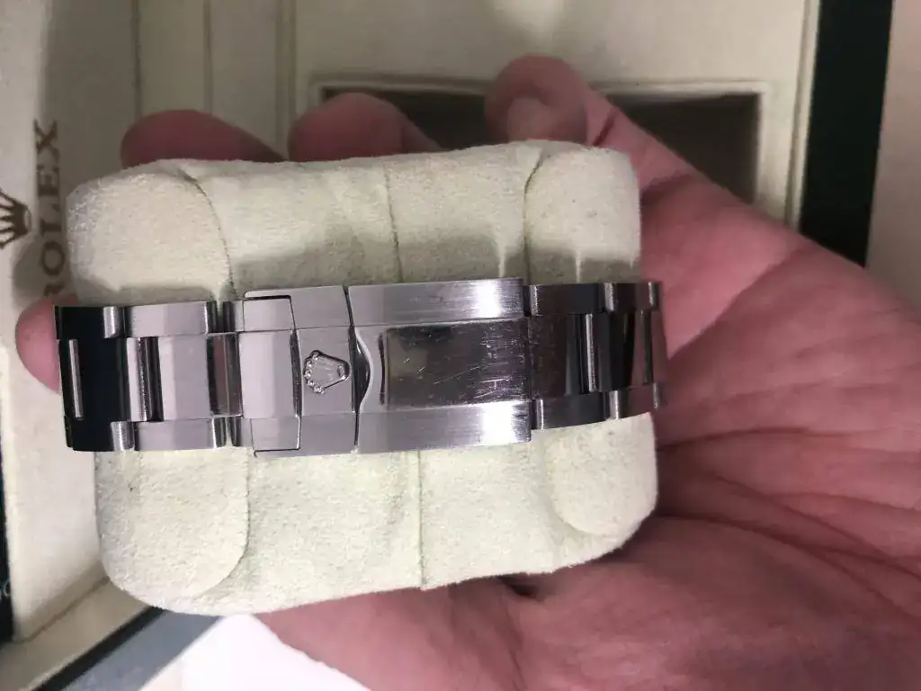 El reloj está en buen estado las típicas marcas de uso y pelillos, nada de holgura, lo único destacar los dos arañazos en la parta de la caja lateral nada importante con un pulido quedaría nuevo pero no lo haría, fijar en la foto 3.