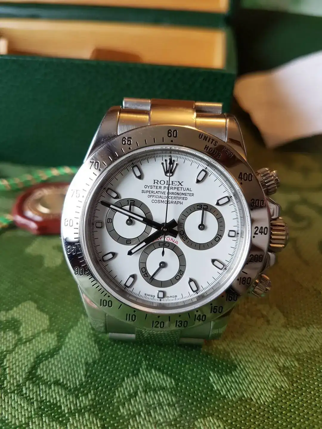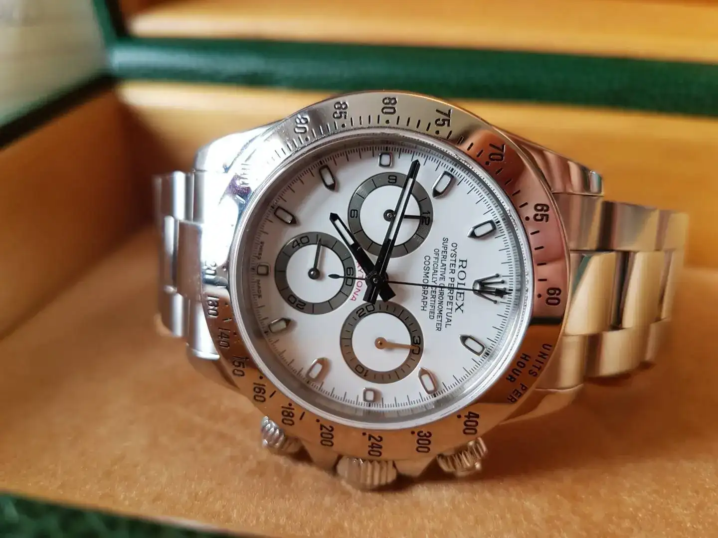 Se trata de un Rolex Daytona 116520 en buen estado, nunca pulido con marcas normales de uso.