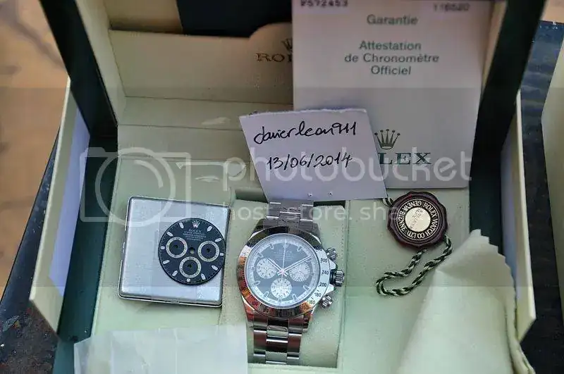 Se vende Rolex Daytona 116520 serie F, lleva el dial Panda custom( de la misma calidad que los de casa) que se le ha cambiado este Mayo, hace menos de un mes en mi Relojero, donde se le cambio las juntas y se le hizo la pruebas correspondientes.