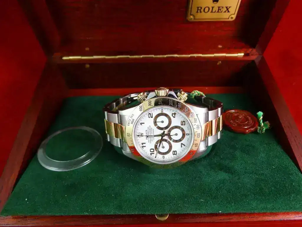 Hoy sacamos a la venta uno de los relojes más demandados del mercado actual; el Daytona se ha convertido en un auténtico icono, apreciado por amantes de la relojería y coleccionistas, siempre por supuesto teniendo en cuenta la constante revalorización que se ve y continúa viendo a lo largo de los últimos años.