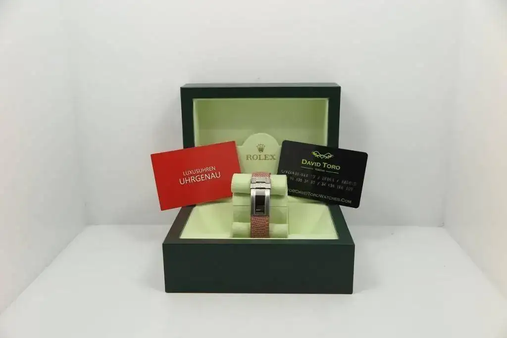 - Brazalete aligátor con deployante de oro blanco