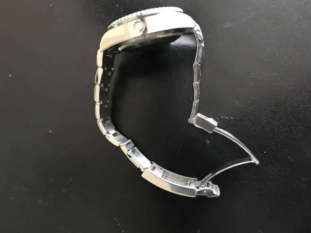 El reloj se encuentra en buen estado. Tiene los pelillos y marcas asociadas a un uso moderado y una minúscula marquita en la caja entre la 1 y las 2 que me resulta muy difícil sacar en foto. Sin ninguna duda, un ligero pulido lo dejaría como nuevo, pero eso ya prefiero que lo decida el nuevo comprador.