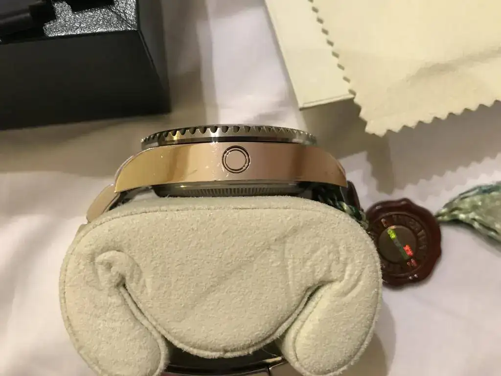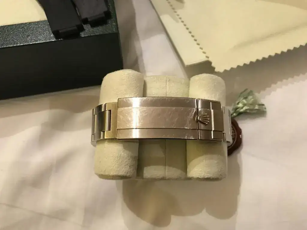 Se entrega con Ruberb. Se adapta a cualquier muñeca porque va insertada en el cierre original de Rolex. No tiene ni golpes ni picotazos. Solo roces de uso perfectamente eliminables con un pequeño pulido. Solo venta. El dinero ya está invertido en otra pieza. Gracias y saludos.