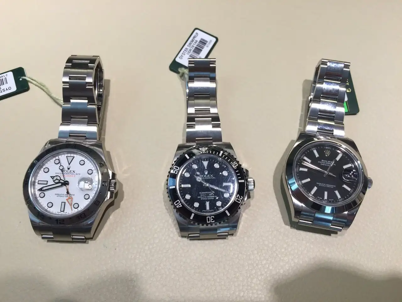 Vaya tiempos y vaya tridente. Para mi con estos tres quizá no me haría falta más, tendría solo el pequeño Tank que me autoregalé por el nacimiento de mi hija y mi primer reloj, un Seiko de principios de los 90 que aún conservo.Mirando fotos en el móvil he encontrado ésta de una vez que fui al CO de Rolex en el 2015 a probarme un DJ y me sacaron estos modelos, todos ellos disponibles al momento