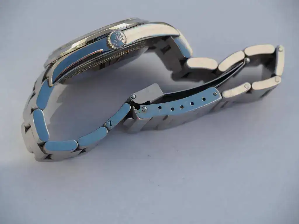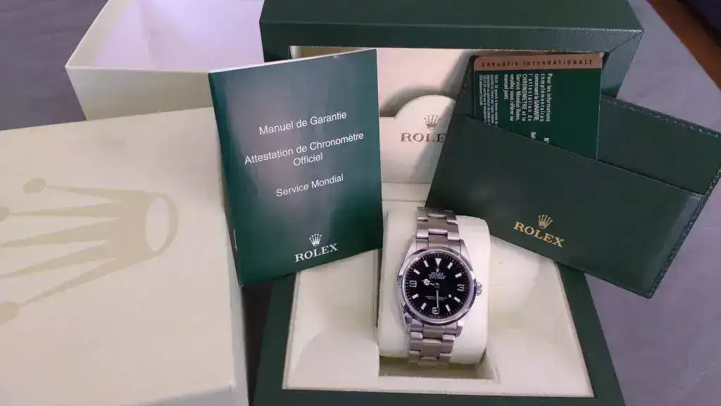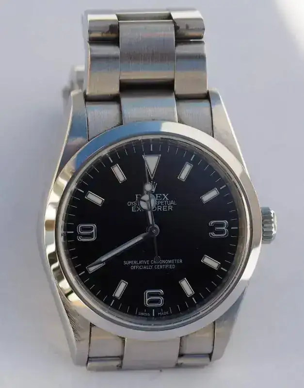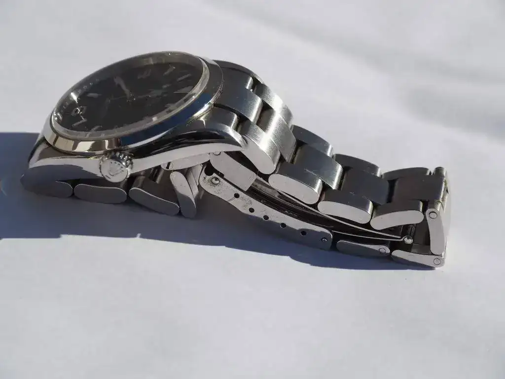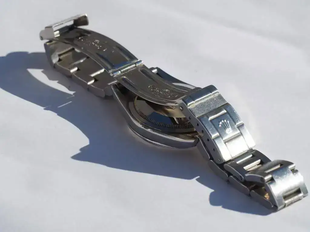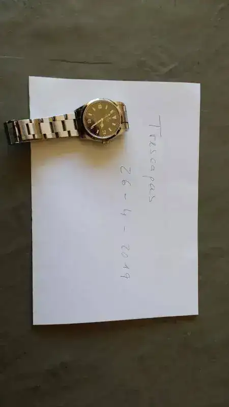 Saco a la ventaeste precioso Rolex Explorer I, referencia 114270 de 36mm. Lo compré en 2013 y he hecho de él unuso moderado. El bisel tiene marcas superficiales, de esas que destacan segúncómo le dé la luz, pero sólo mínimos toques. El más visible, con serlo poco, sepuede apreciar en alguna de las fotos, en la parte exterior del bisel, entrelas 5 y las 6. Por lo demás, el reloj está en un estado excelente. El reloj vaperfecto en mi muñeca de 17,5 cm. No tengo eslabones sobrantes.