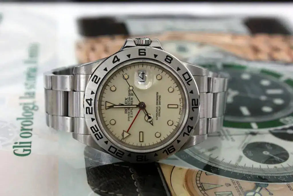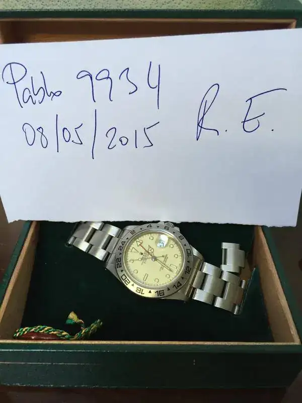 A la venta este precioso Rolex Explorer 16550 "Cream Dial" de 1985. Preciosa pátina, estado impecable y con su brazalete 78360/501. Cajas, garantía original, hangtag lacre, traducción, booklet, factura revisión oficial Rolex de 2001 y su certificado de garantía correspondiente.