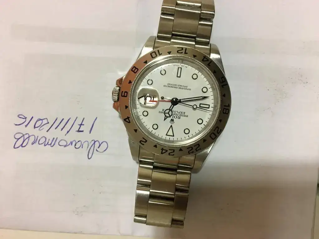 Hola buenas saco para venta este bonito Rolex explorer 2 de 40mm en color blanco, el reloj está en buenas condiciones solo leves rayas de un uso moderado en armys y bisel cristal perfecto. No poseo caja mi papeles si una factura de una revisión que se le hizo en 2011. E instrucciones.