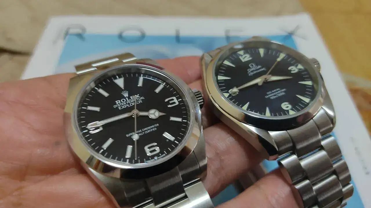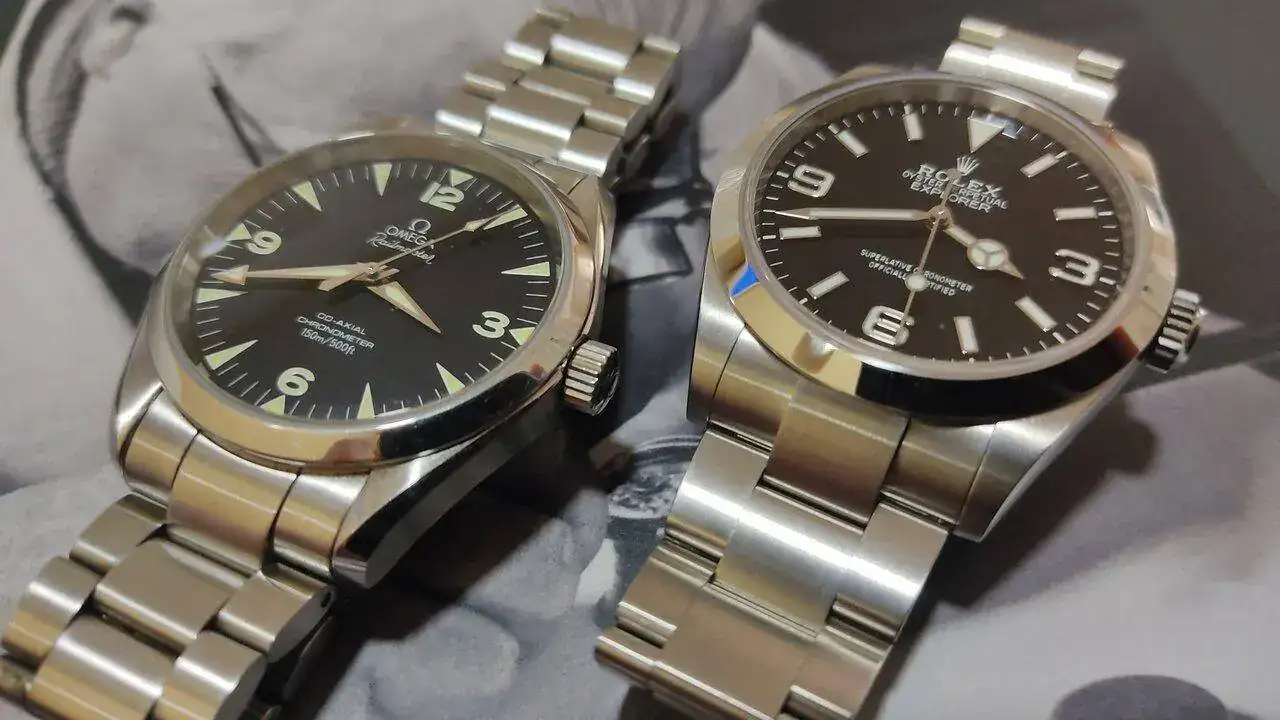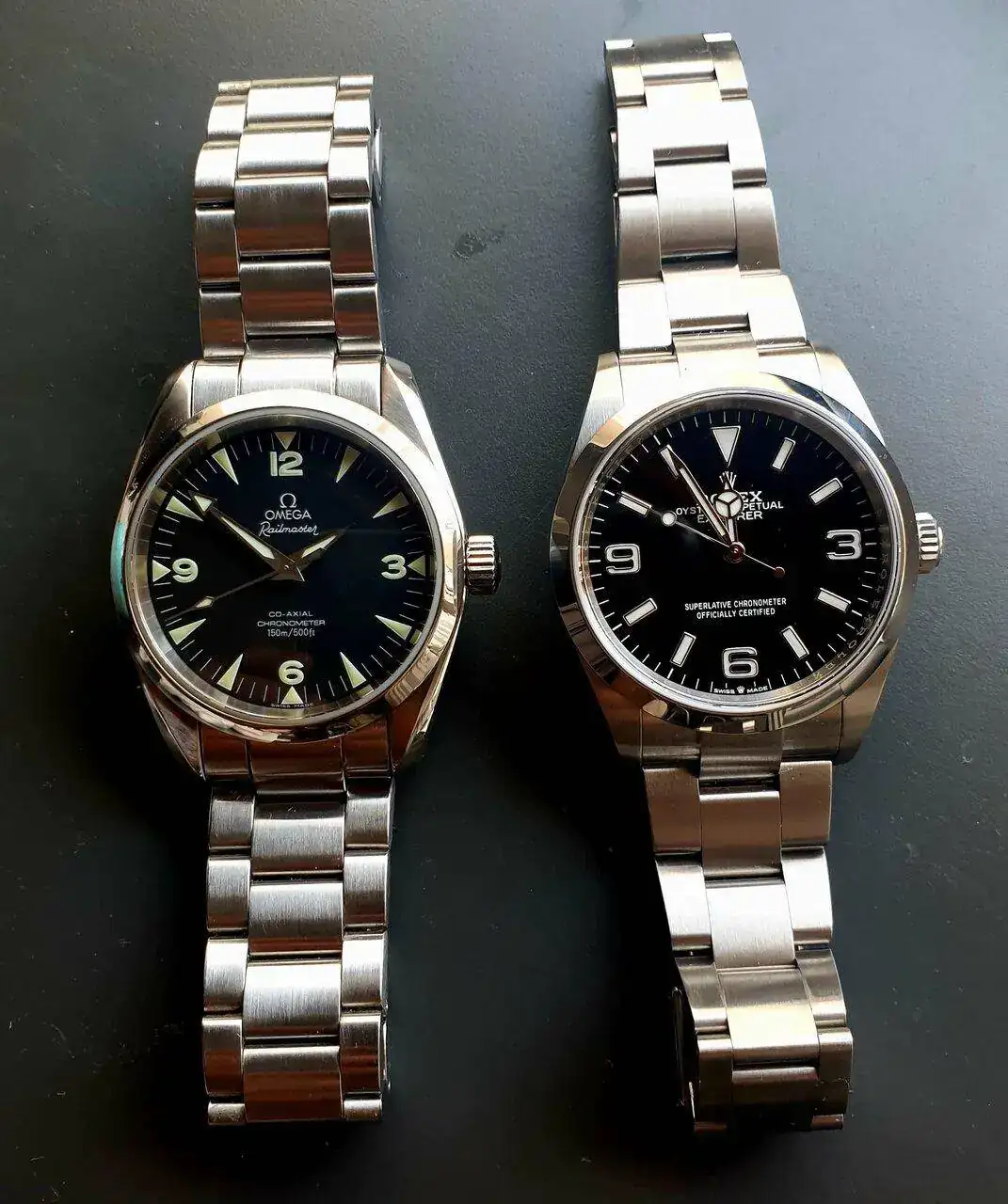 Se trata de un Rolex Explorer I de 40 mm de 2023 y un Omega Railmaster de 39 mm, primera década de los 2000
