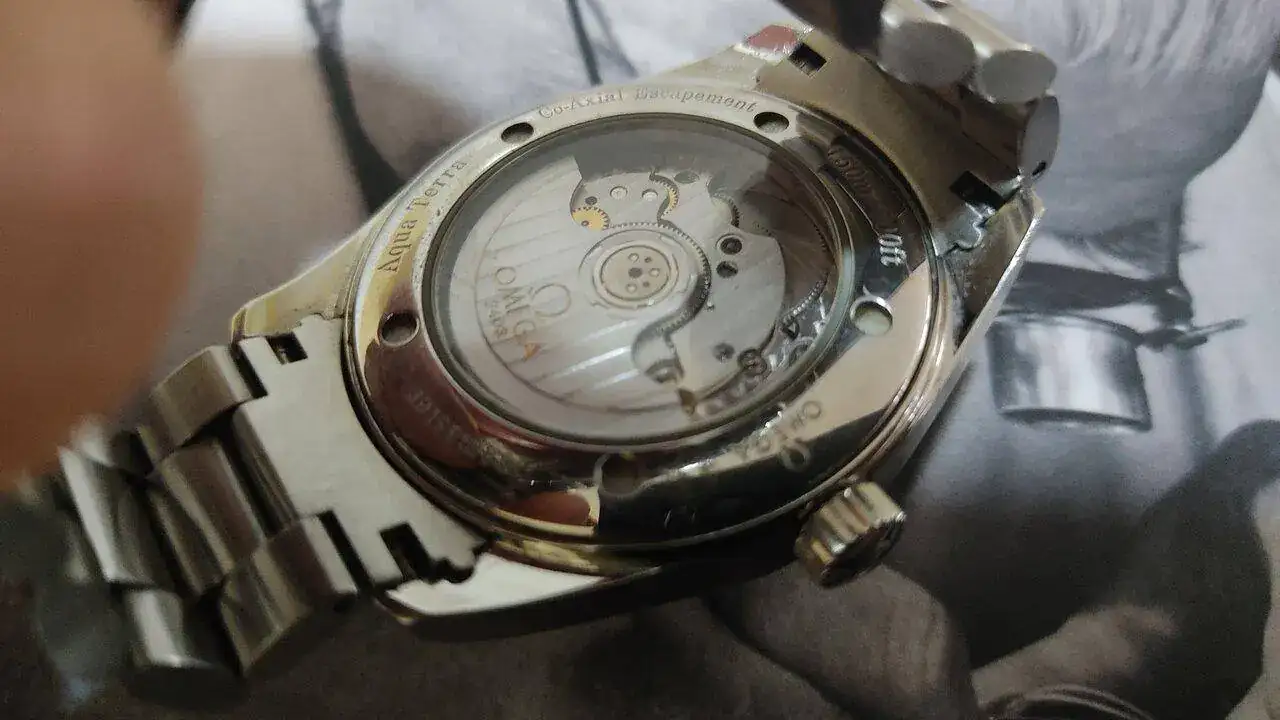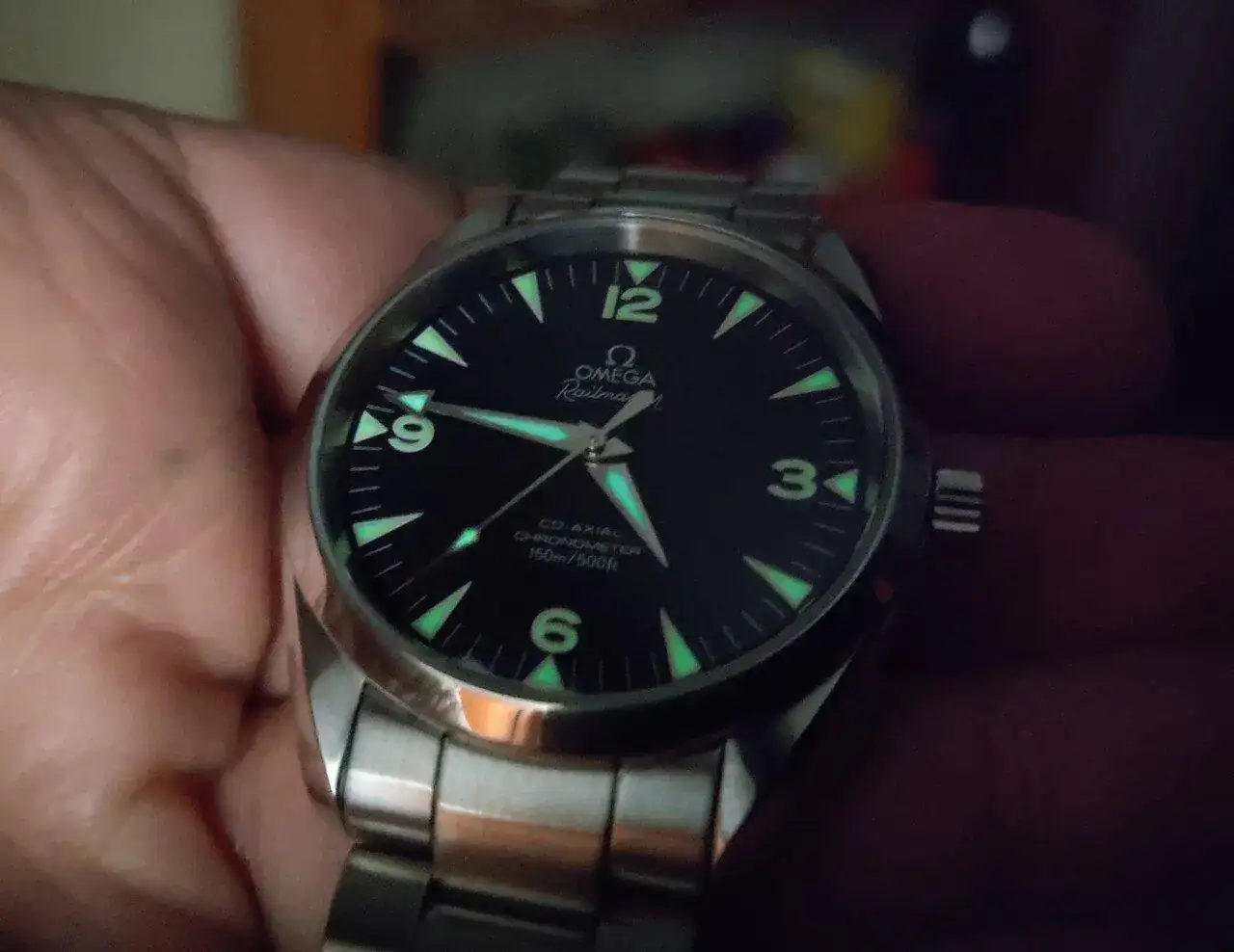 El Omega Railmaster, de 2008, tiene 39 de caja 46.8 lug to lug x 11.5 de alto. Comodísimo y con un calibre 2500 base ETA 2892 que va muy fino de precisión. Cristal Zafiro, ligeramente abombado, con 48 h de reserva de marcha.