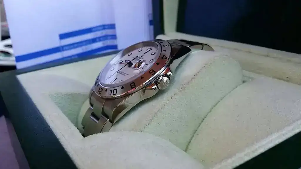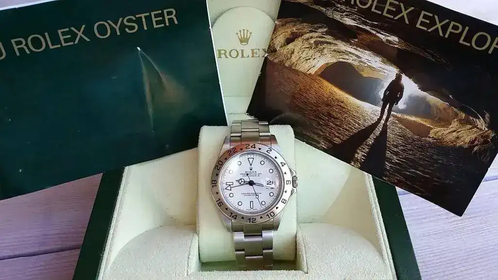 Hola a todos saco este Explorer II letra f de finales del 2004, modelo ya sin agujeros, estado muy bueno como se ve en las fotos, incluye caja posterior al reloj y media revisión del 2011, en concesionario oficial, juntas, pulido e impermeabilidad, marcha perfecto, armis perfecto sin holgura completo 6/7 eslabones, para darse una idea después del pulido en concesionario tiene 6 puestas.
