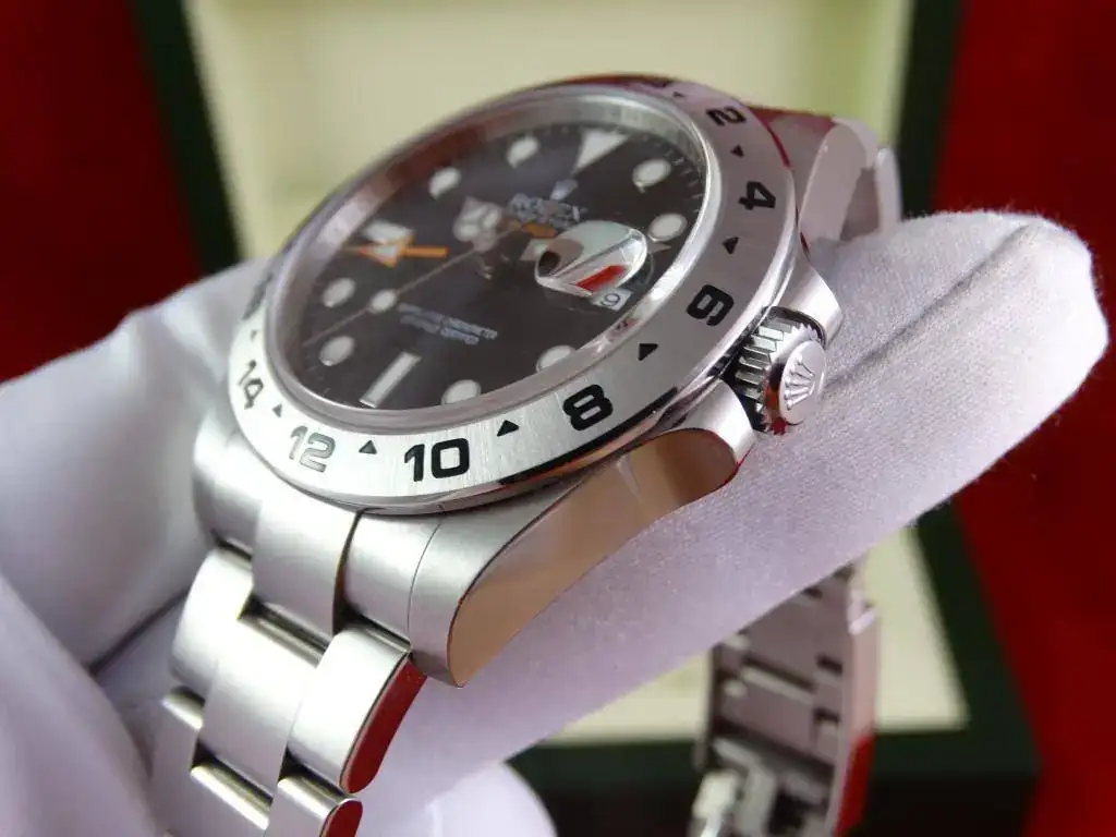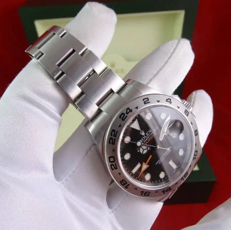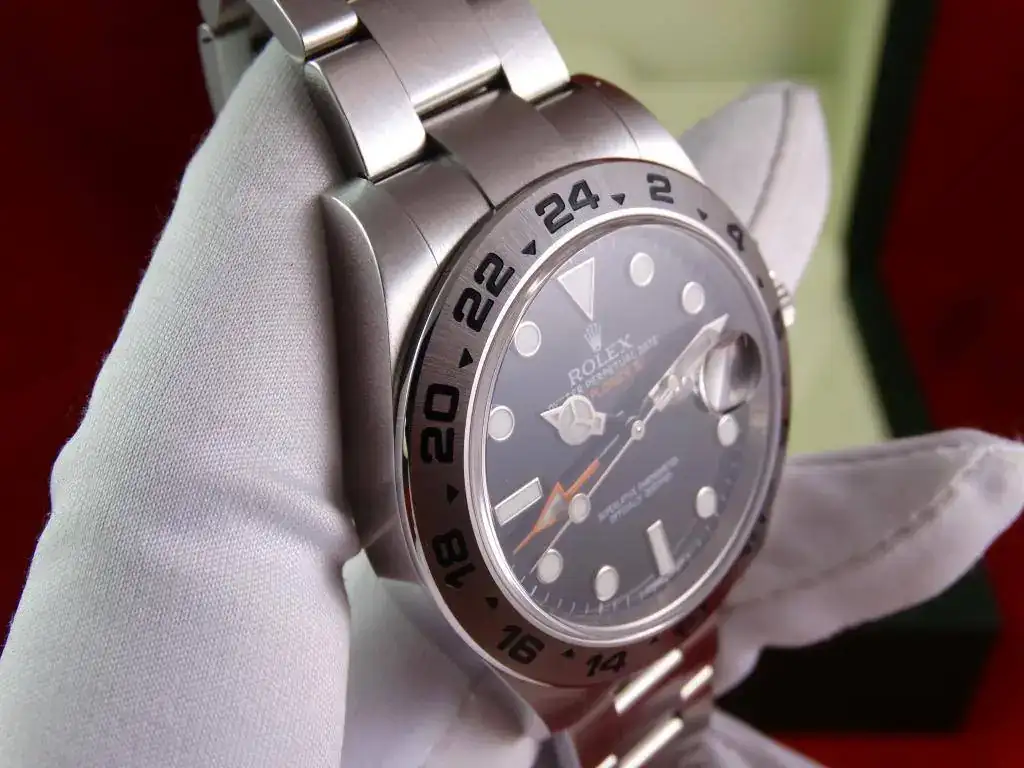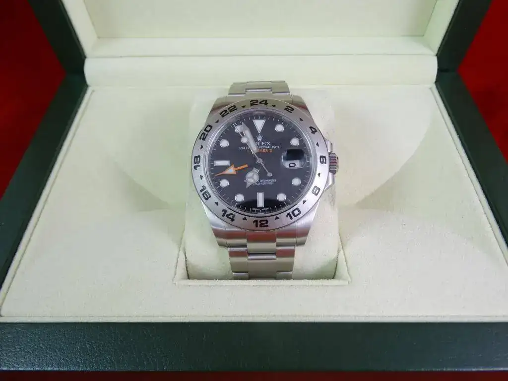 Ofrecemos uno de esos relojes que necesita poca presentación: el ROLEX Explorer II. Se trata de la referencia 216570, que es la edición de 42 mm. Se trata de un ROLEX enmarcado dentro de los deportivos, pero con una estética menos común, con su bisel fijo de acero pulido que sirve de guía para la indicación de 24 horas; el último del catálogo que lleva este tipo de bisel.