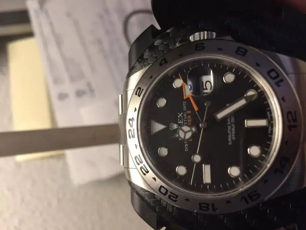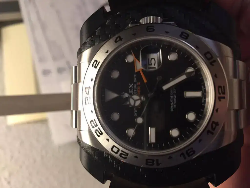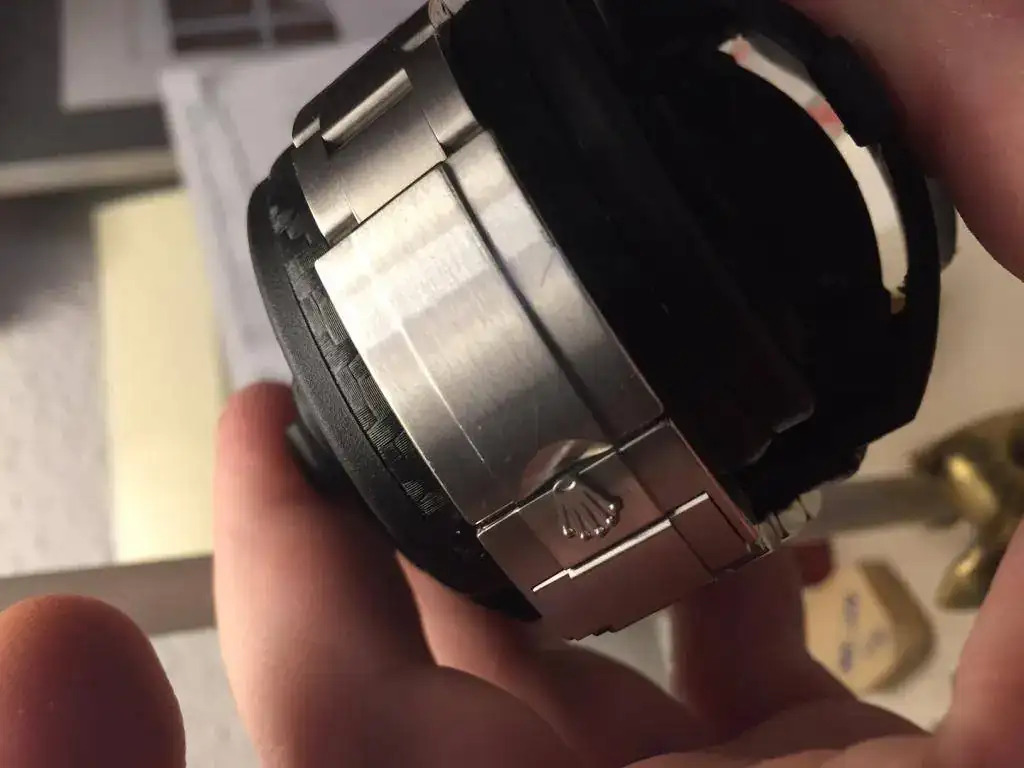 El reloj tiene marcas de uso normales de las 15 veces que me lo he puesto. Tiene una pequeña marca junto a la corona del " experto " del Corte Ingles que me ajustó el armix.