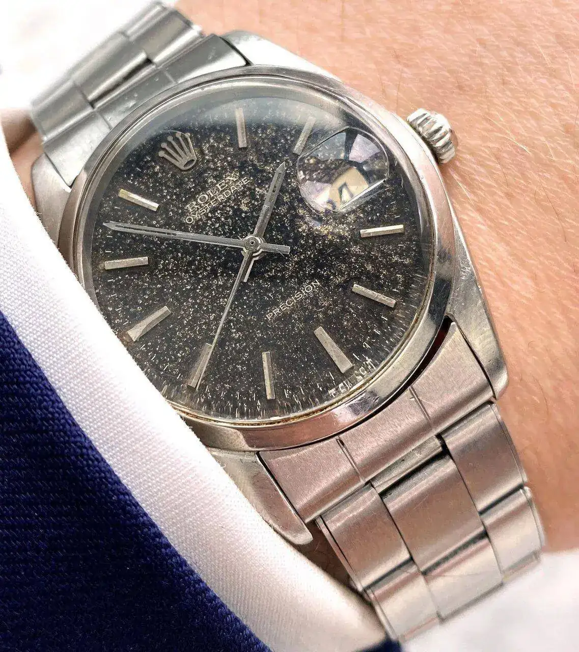 Te ha tocado la lotería, porque ese deterioro de la esfera es uniforme y una patina muy atractiva para aquellos que buscan detalles fuera de lo común. Hay gente a patadas que trata de replicar y conseguir efectos como ese en las esferas de forma completamente artificial, porque por mucho que duela admitirlo, un Rolex con una característica estética única, es un tesoro. Lo peor de todo es que luego los mismos que te dicen que lo mandes al SAT, dirán que les encanta el Sub Ghost...