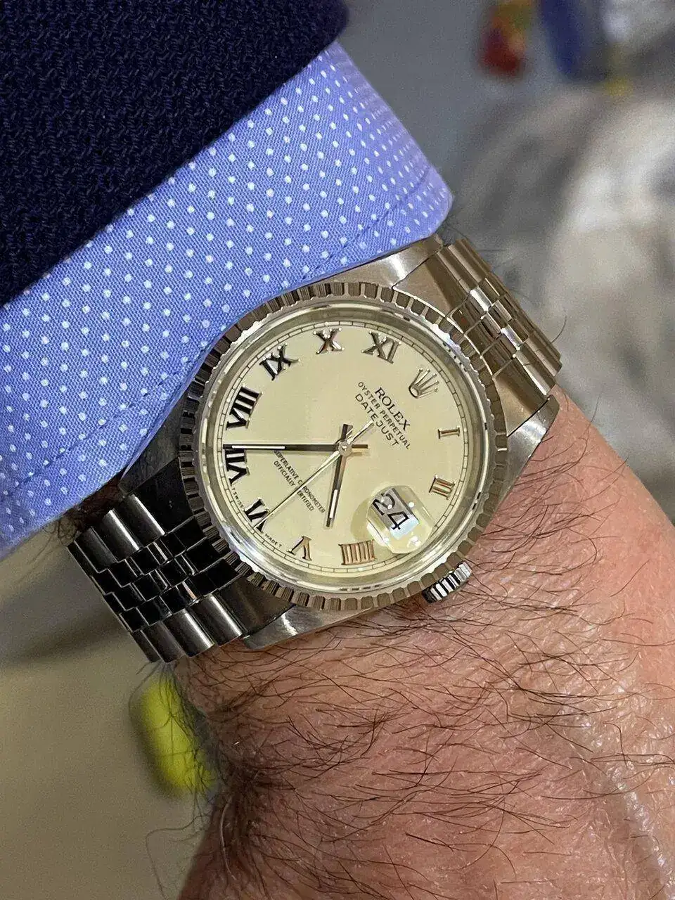 Por ejemplo, este es mi primer Rolex que compré en 1991, era blanco blanco y con el tiempo ha cogido esa “creme dial”,
