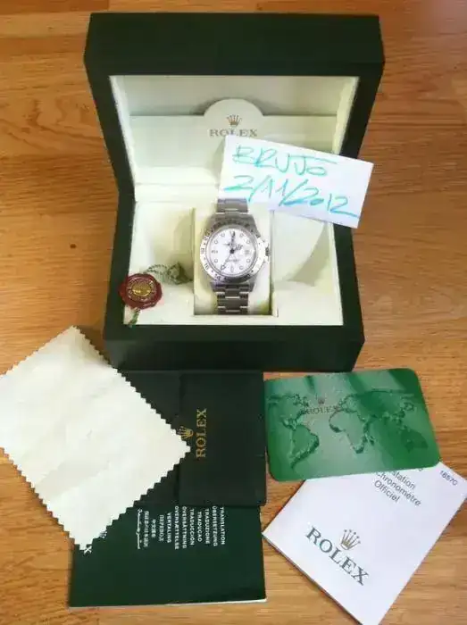 Reloj del año 2006 con caja y papeles. Dotación completa a excepción del libro Rolex Explorer y de la almohadilla de la caja.