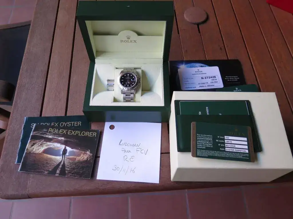 Pongo a la venta este Rolex Eplorer 16570 esfera negra del 2010, por lo que tiene aro de seguridad. Lo compré en octubre de 2015 y el reloj había pasado revisión en CO rolex, tal como nuestra la tarjeta de garantía que estaba vigente hasta mayo 2016. Antes de que esta venciera aproveche para llevar el reloj a mi CO para que lo afinaran y me lo dejaron en una marcha de 1 segundo/día.