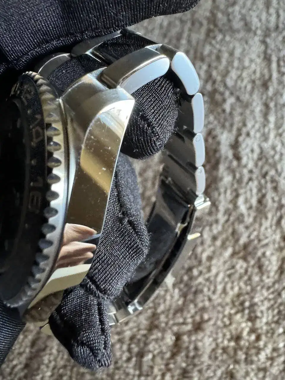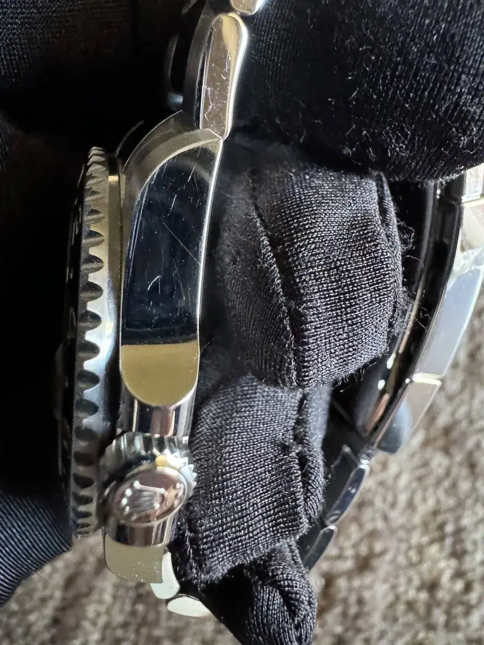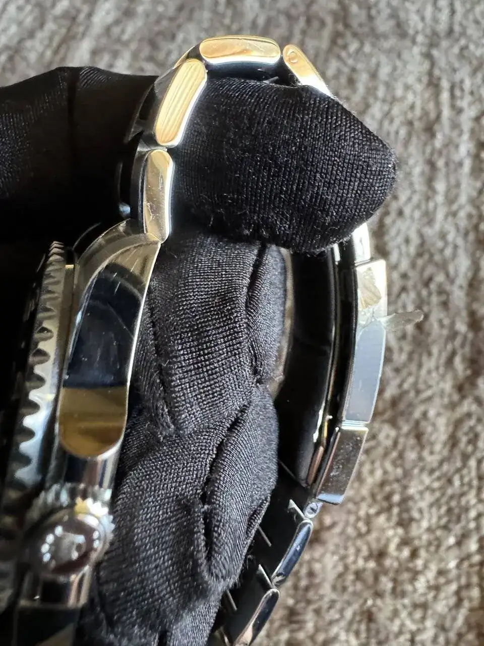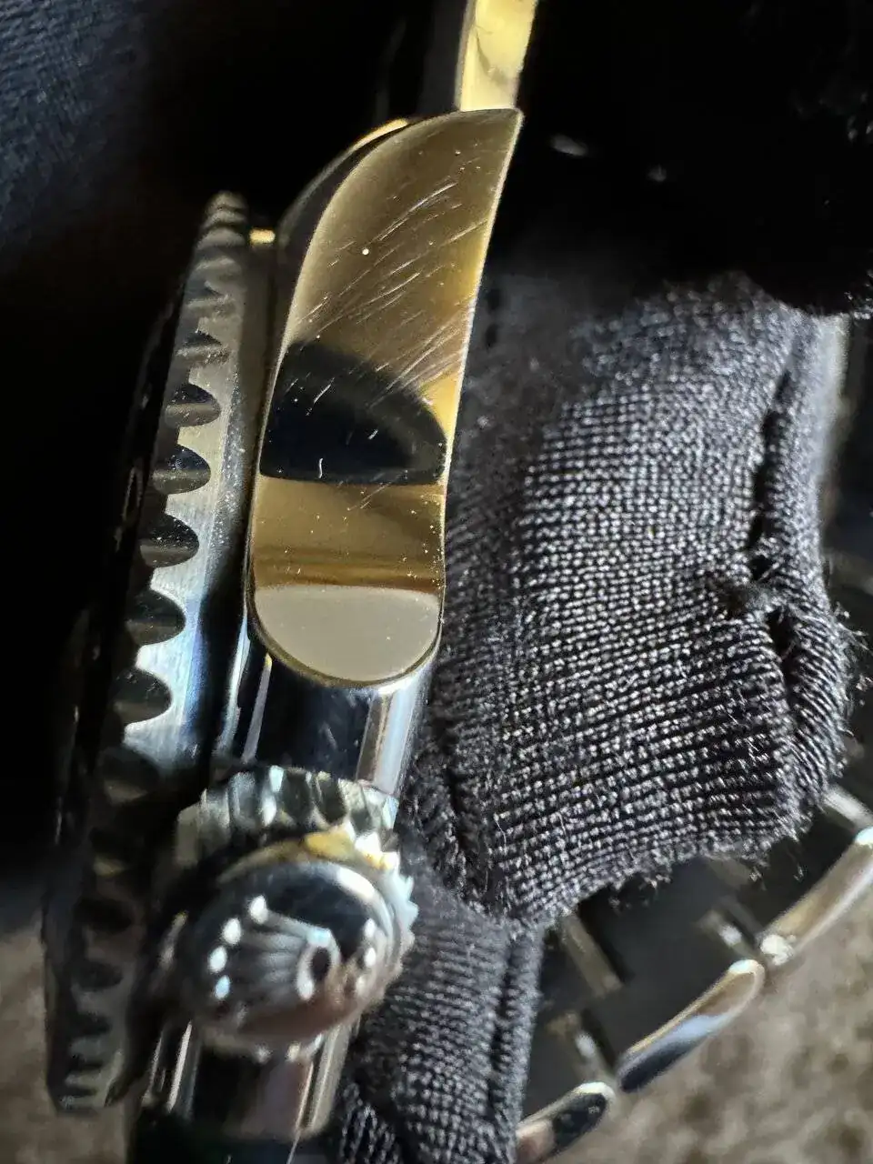 No presenta golpes ni nada por el estilo, el reloj ha sido usado en contadas ocasiones y cuidado, solo los típicos micropelos de las zonas pulidas, que son imposibles de evitar . Las últimas fotos son sin usar macro, para apreciar o no apreciar los micropelos…