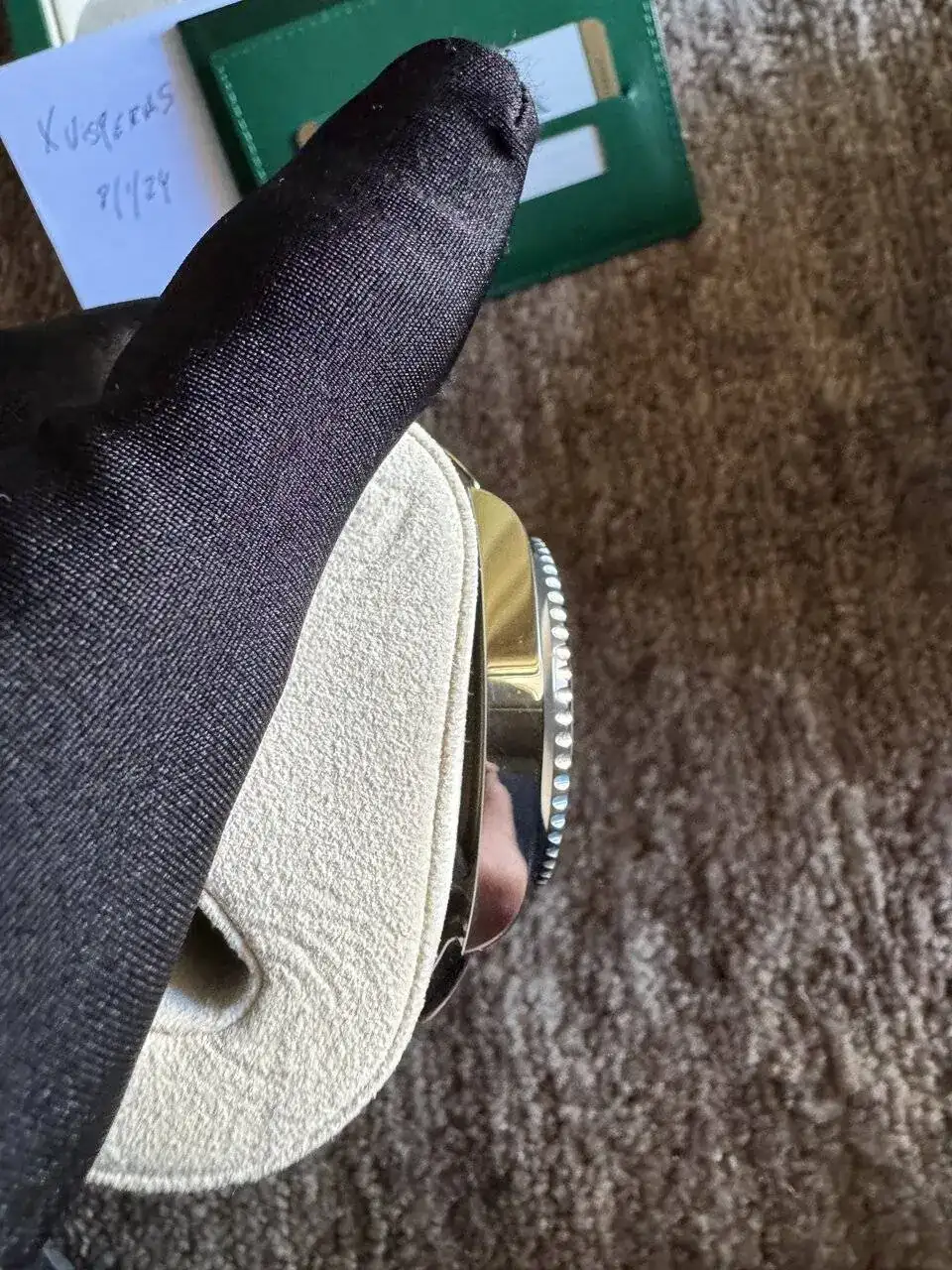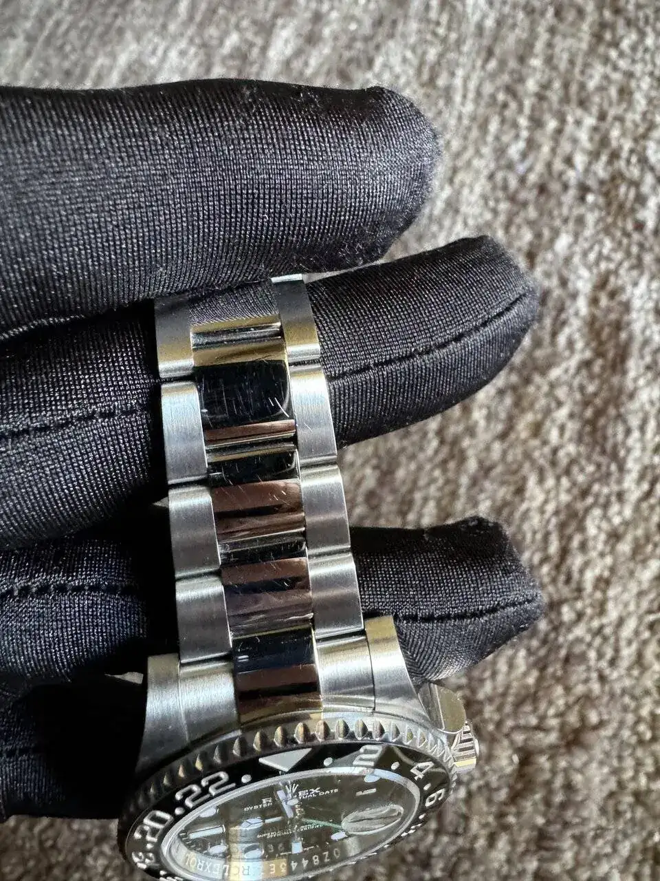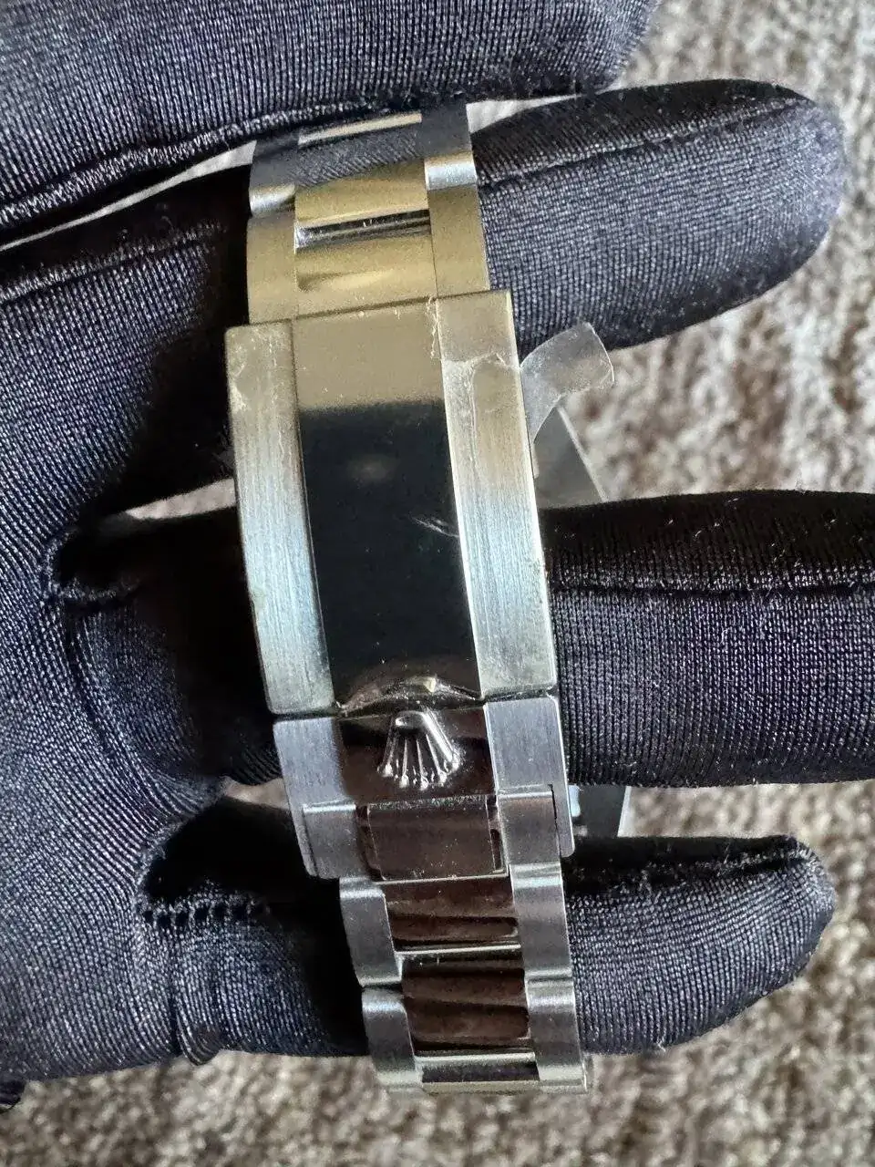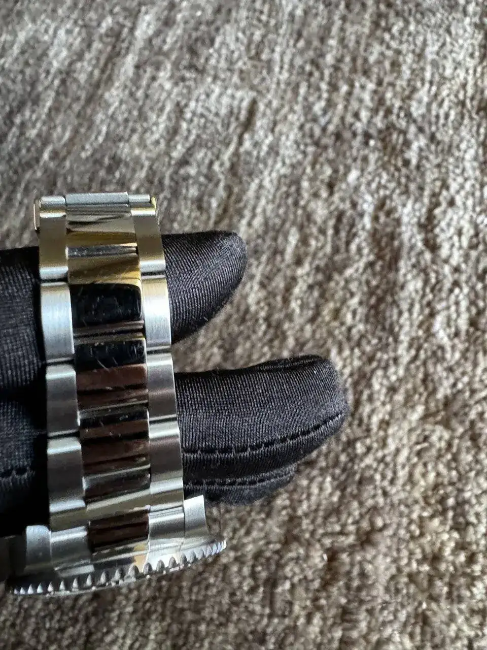No presenta golpes ni nada por el estilo, el reloj ha sido usado en contadas ocasiones y cuidado, solo los típicos micropelos de las zonas pulidas, que son imposibles de evitar . Las últimas fotos son sin usar macro, para apreciar o no apreciar los micropelos…