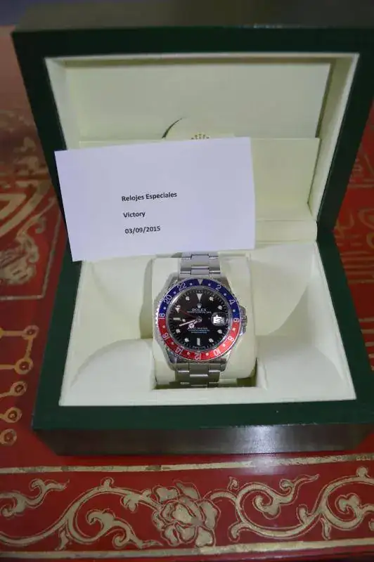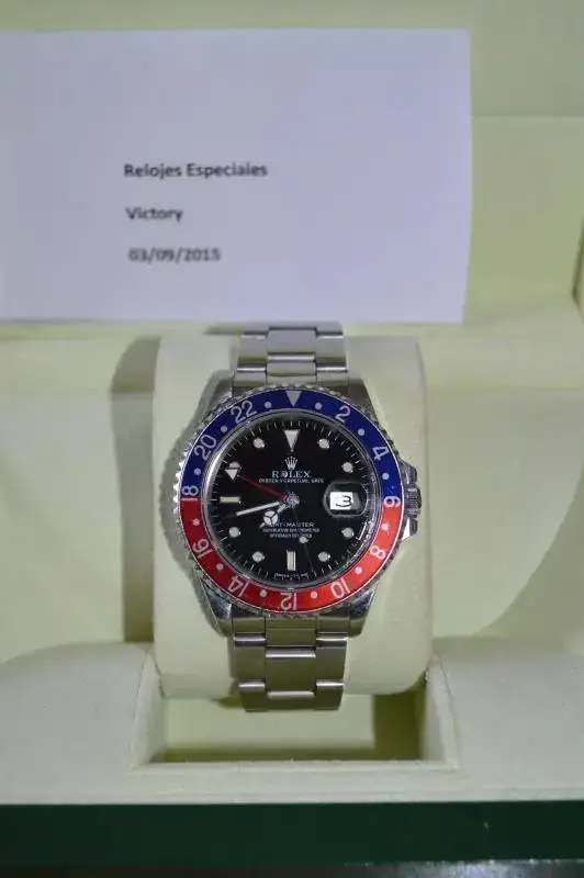 Hola, pongo a la venta este Rolex GMT Ref. 16700 de año 1987, el reloj marcha bien, tiene signos de los años que tiene como la holgura lógica en el brazalete, una marca entre las 3 y las 4 en el Zafiro y el acero de la pieza que une el brazalete con el cierre, ver fotos.