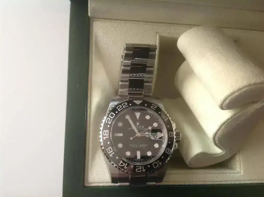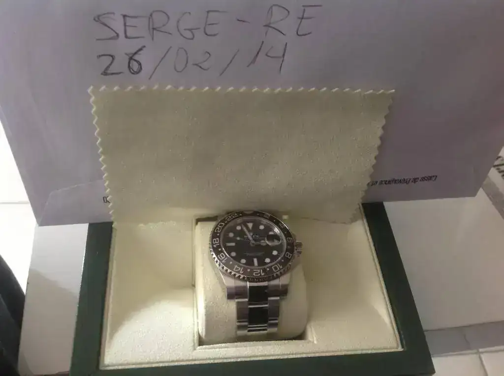 Rolex GMT de abril'12 le queda por lo tanto más de un mes de garantía aún. En perfecto estado. Lo único reseñable son las típicas microrayas en el cierre en la zona pulida a espejo y algún pelillo inevitable. Set completo