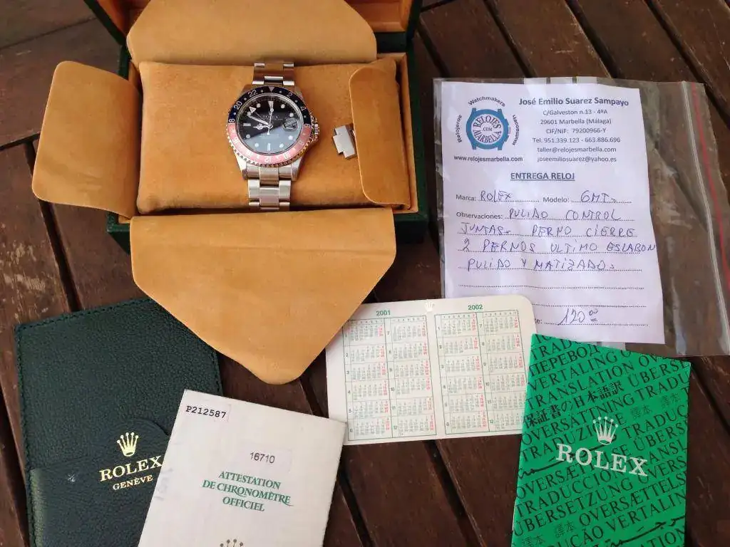 Hola a todos, saco a la venta esta pieza, su estado tras revisión de juntas y pulido es muy buena por no decir impecable, armis completo 6/7 eslabones, tiene la holgura típica de un reloj usado pero con mucha vida por delante por supuesto, el bisel tiene un degradado precioso y por eso no se cambio, todos sabemos que uno nuevo no supera los 50€ pero me parecía una pena sustituirlo y lo dejo a juicio del comprador.