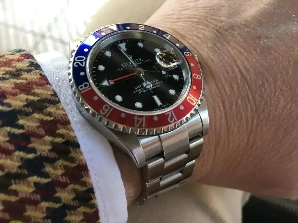 Saco a la venta este Gmt Pepsi, tiene toda la dotación excepto el papel troquelado sellado, se trata de un serie "Y" nº 9xxxx... de finales del 2002. En el 2015 se le cambiaron juntas y evidentemente hecho hermetismo (adjunto ticket de la prueba), ya es caja sin agujeros laterales, muy bien conservado con mínimas marcas de uso, sin golpes, armis sin apenas holgura, luminova perfecta. Le pongo un precio de 7.300 €, doy preferencia a la venta pero podría interesarme un Milgauss azul, Sub cerámico date, Batman...cualquier cosa por este medio o whatss: 646_886_148