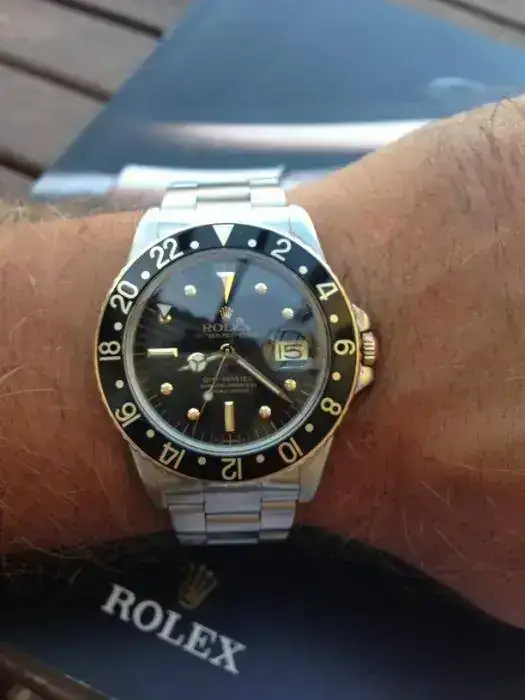 Hola a todos saco a la venta esta super pieza un GMT master del 1978 plexi, 40mm, modelo 1675, nº de reloj 5801xxx, este reloj montaba armis jubilee mixto y en el año 92 se sustituyo por un armis oister letra R todo acero, que en mi opinion le queda fabuloso y lo hace mucho mas ponible, por supuesto original, en perfecto estado y sin holguras reseñables.
