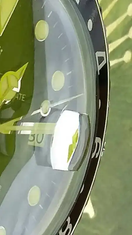 Las características de este reloj son bien conocidas por todos. Su estado es magnífico, salvo un pequeño rayoncito cerca de la lente. Mi relojero me ha aconsejado no tocarlo, y que al ser todo original es mejor dejarlo como está que tener que sustituirlo... cuestión de gustos (intenté sacar una foto con lupa ...espero se aprecie)