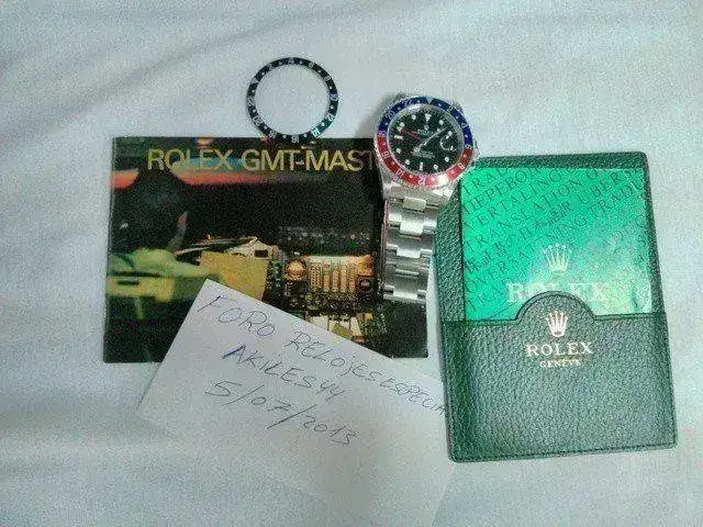 saco para la venta este clásico rolex gmt master I ref 16700 año 1998 indices de tritio, cristal zafiro, pase rapido, etc, etc. Lo doy con dos biseles pepsi y negro.