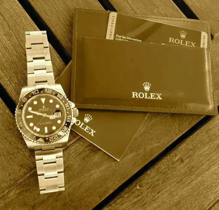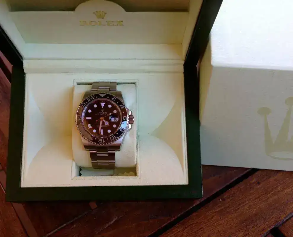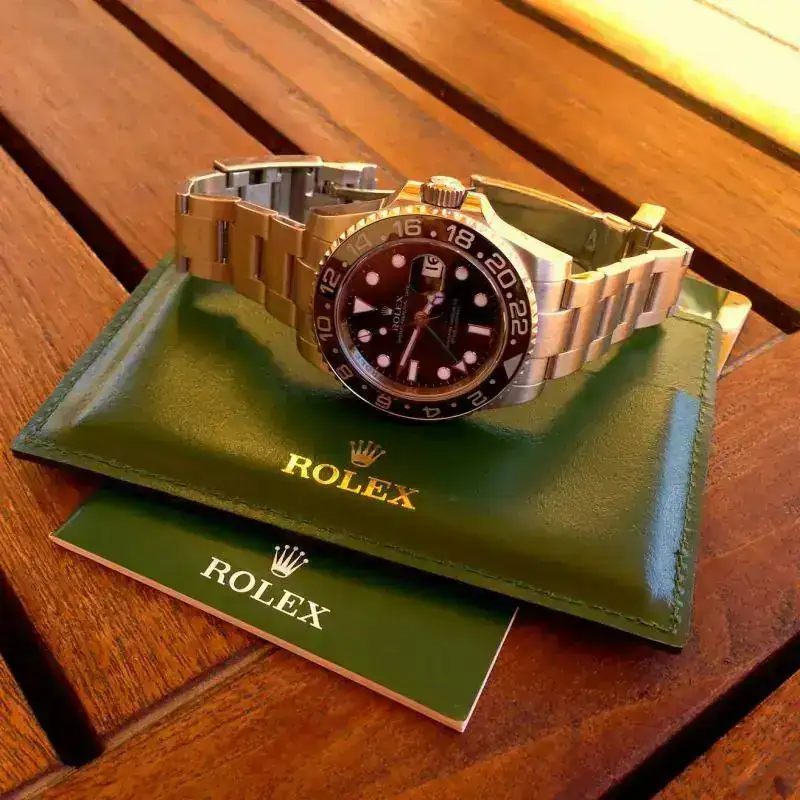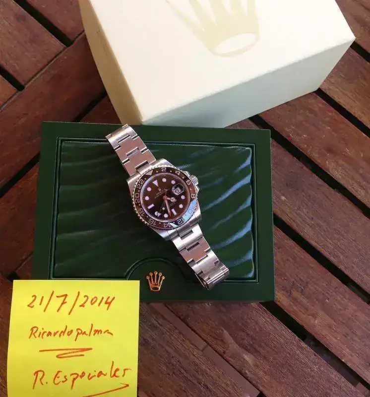 Debido a la renovación de mi colección, saco a la venta entre otros, éste precioso Rolex ROLEX GMT Master II Cerámico 116710LN, adquirido en el año 2009 en el CO. Relojería Alemana de Palma de Mallorca, sólo ha tenido un propietario. El reloj se encuentra en perfecto estado de funcionamiento, únicamente algunas mínimas marcas del uso. Si os fijáis, el eslabón central es “mate” como en los modelos antiguos GMT. Cuando lo adquirí, como que no me terminaba de hacer al eslabón central pulido, lo envié al relojero para un cepillado, ahí veis el resultado que a mi modo de ver le queda genial.