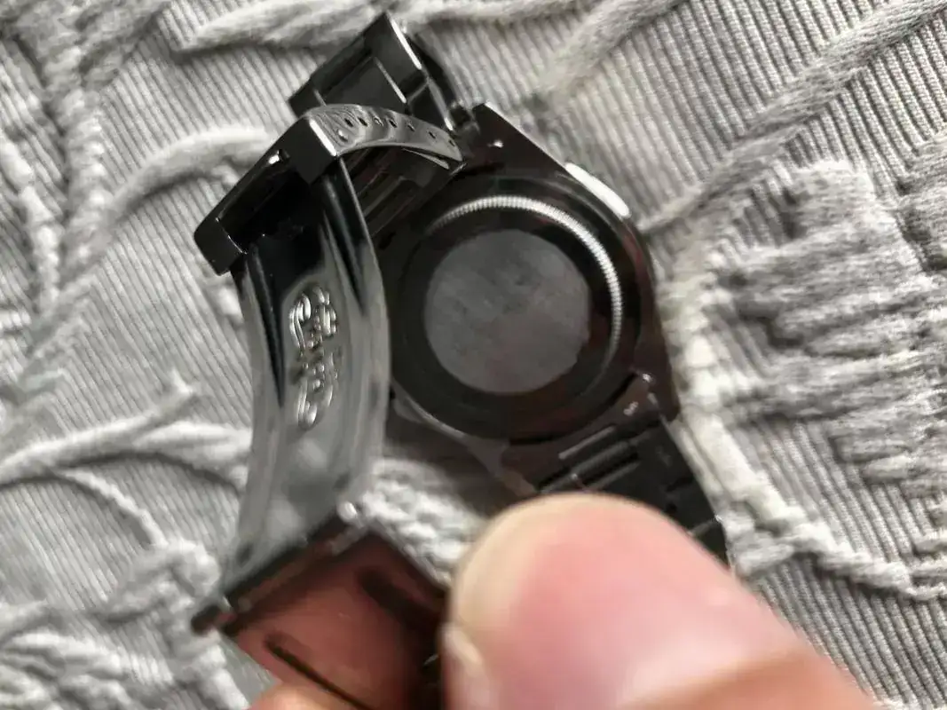 Yo te recomendaría quitar el eslabón rápido de las 6 y pasarlo a las 12 para que te vaya más compensado. Muy bonito el reloj y como dicen esfera y agujas cambiadas a posteriori, lo que supongo que serán ahora luminova,, que te lo aclare alguien mejor
