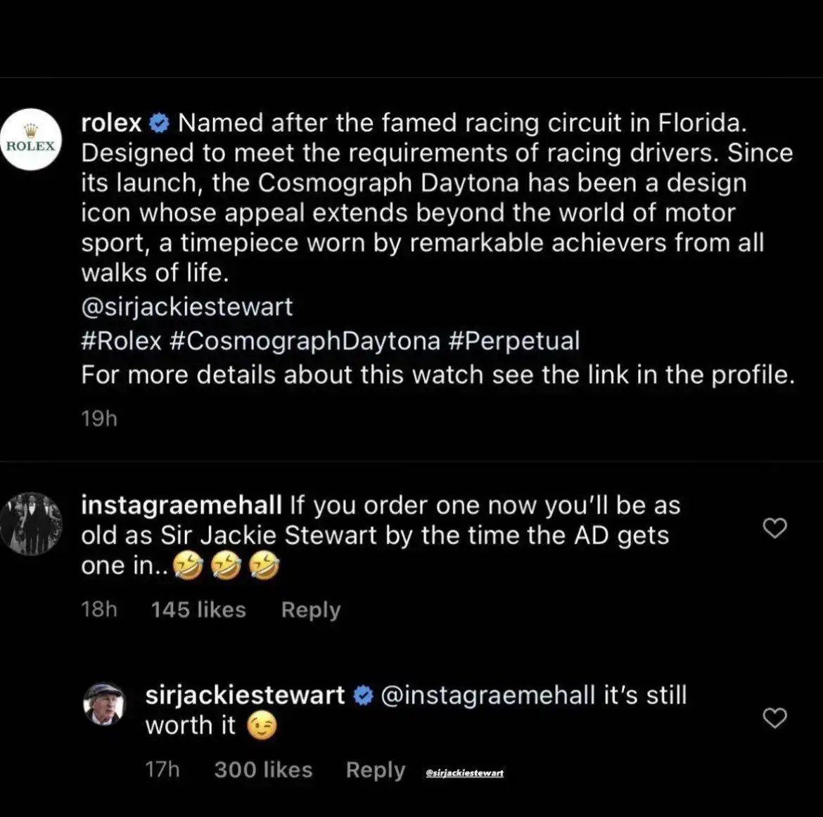 Buenos dias, os quería compartir un post de Rolex en IG y un par de contestaciones, me ha parecido muy gracioso