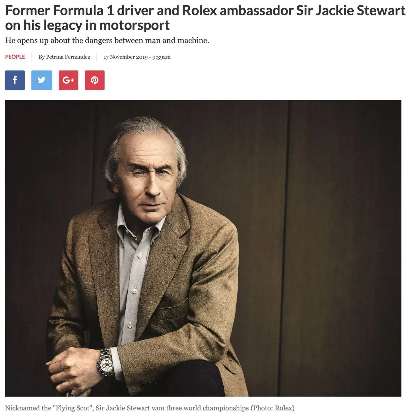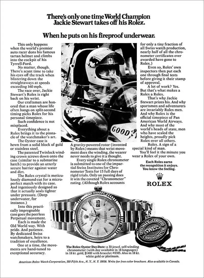 El primer mensaje es un post tipico de marketing destacando bondades del daytona y comentando que el gran Sir Jackie Stewart lleva o llevaba uno en sus tiempos de gloria.