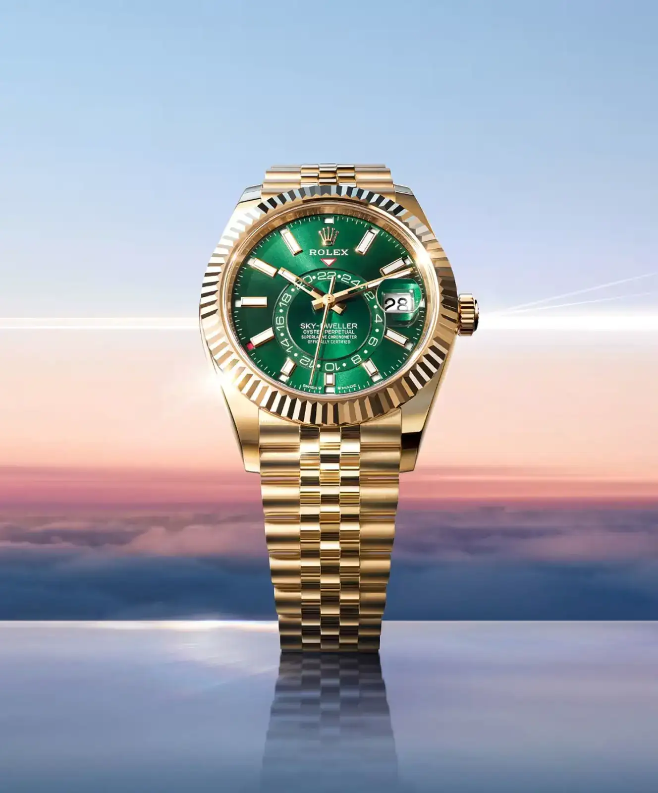 Verde vivo con efecto "Soleil" para el Sky Dweller de oro