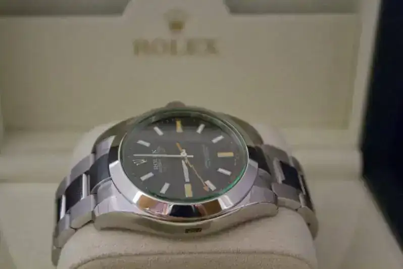 Rolex Milgauss, 116400GV con cristal de zafiro verde.