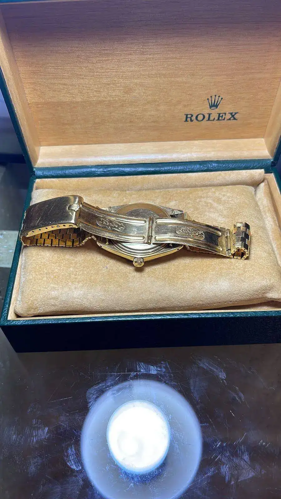 Hola compañeros un amigo me ha enseñado fotos de un reloj rolex que tiene pero que le es imposible datarlo y saber que modelo es y el valor de este a continuación os adjunto unas fotos para que lo veáis y a ver si podéis guiarnos un poco.