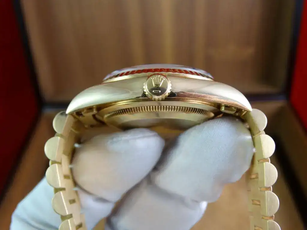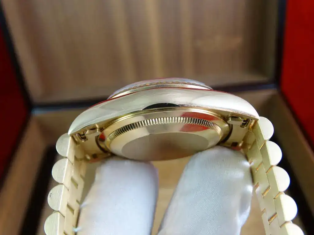 Pocos relojes tan elegantes y que no sufren el paso del tiempo existen, como el imperecedero Day-Date. Un modelo que Rolex ha sabido mantener a lo largo de los años como la sofisticación hecha reloj. Una pieza que su tamaño no desmerece, ya que los 36mm es una medida ideal para todo tipo de muñecas. Esta pieza es realmente espectacular en muñeca y muy especial. En directo no deja indiferente a nadie. El brazalete president es uno de los iconos de Rolex y la comodidad que confiere es extraordinaria.