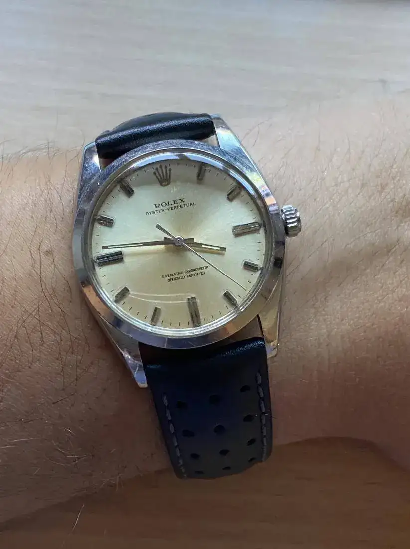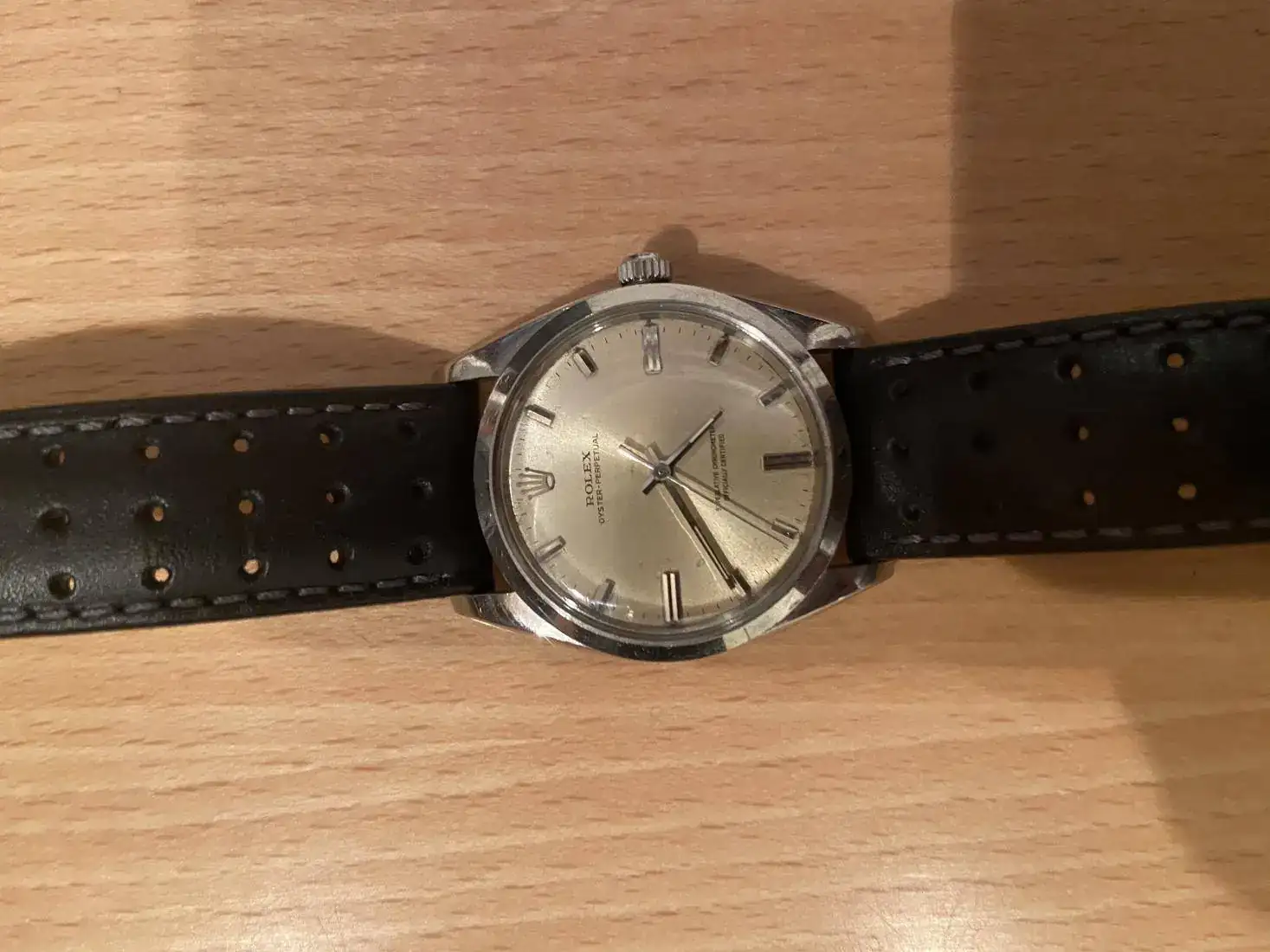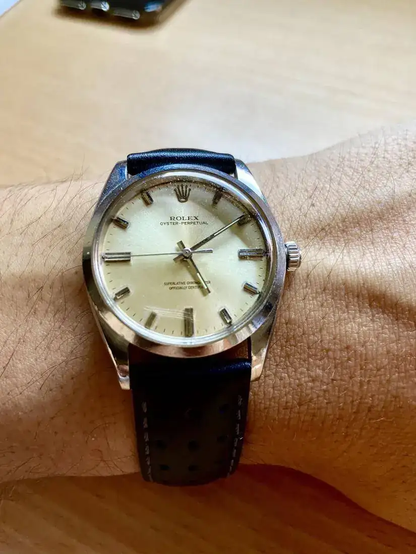Saco a la venta este vintage tan especial. Se trata de un Rolex Oyster Perpetual 1018 que por su numeración data del 1962. Se trata de los primeros movimientos automáticos montados en OP por Rolex y en 36mm, reloj muy particular y muy difícil de ver.
